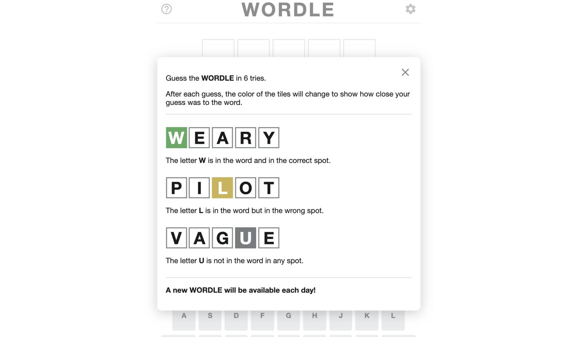 La sfida è quella di utilizzare tutte le informazioni per cercare di indovinare la parola nelle righe successive. I tentativi sono sei, al termine dei quali dovremo attendere il giorno successivo per poter provare a giocare di nuovo (almeno sullo stesso device o a patto che non si pulisca la cache o si utilizzi altro browser).