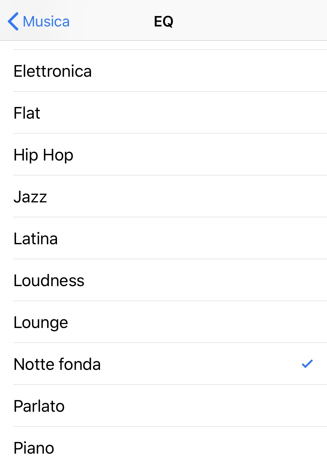 Se si utilizzano gli altoparlanti stereo del telefono per ascoltare la musica e si scopre che il volume non è abbastanza alto, c’è un’impostazione sepolta nell’iPhone che aumenterà il volume fino a 11. Si apre l’app Impostazioni iOS e si scorre verso il basso fino a Musica, quindi si apre l’equalizzatore e si seleziona “Late Night”.