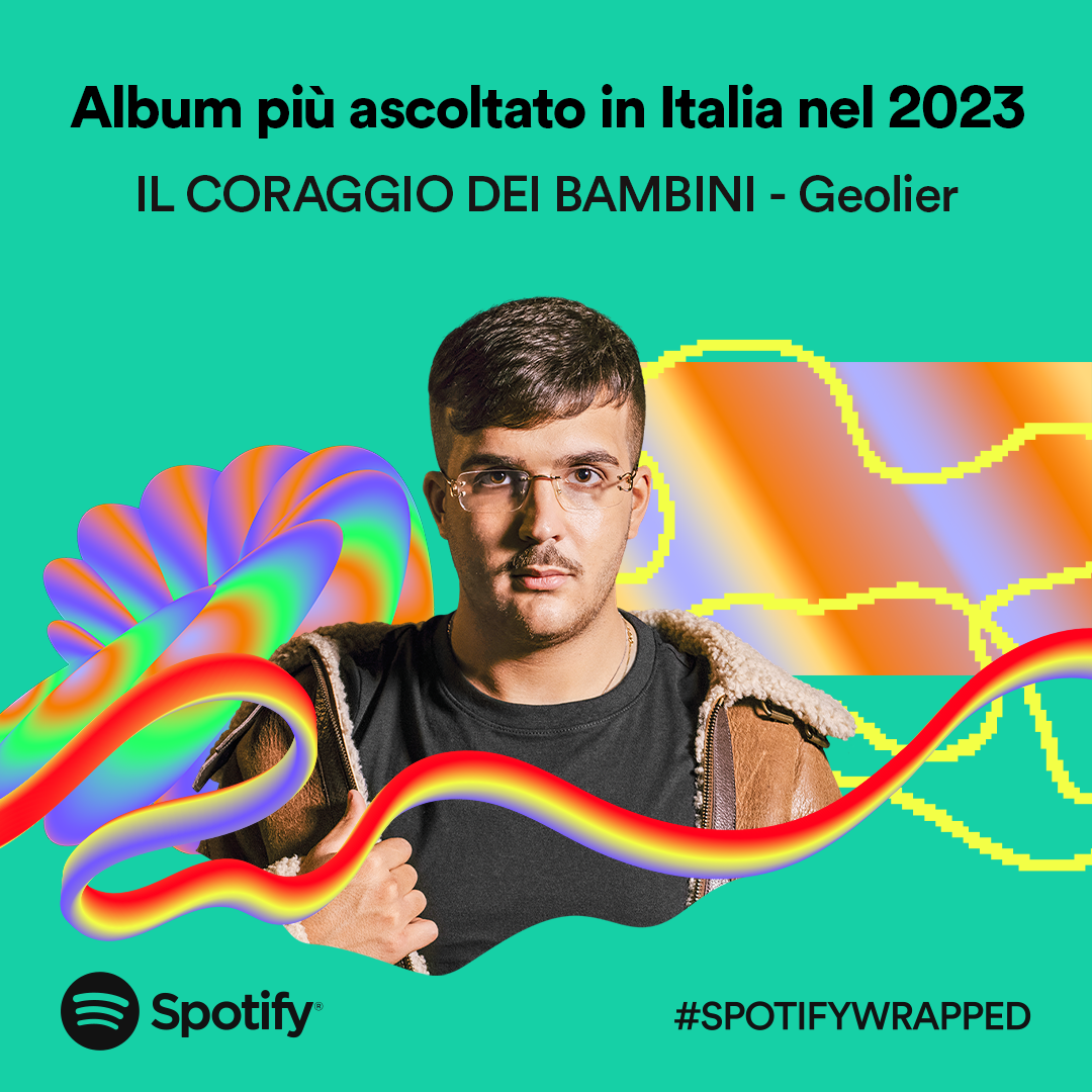 Di Geolier è anche l’album che registra il maggior numero di ascolti, “IL CORAGGIO DEI BAMBINI”, seguito da “SIRIO” di Lazza e “La Divina Commedia” di Tedua. Rispettivamente, invece, in quarta e quinta posizione ci sono “Milano Demons” di Shiva e “Fake News” dei Pinguini Tattici Nucleari.