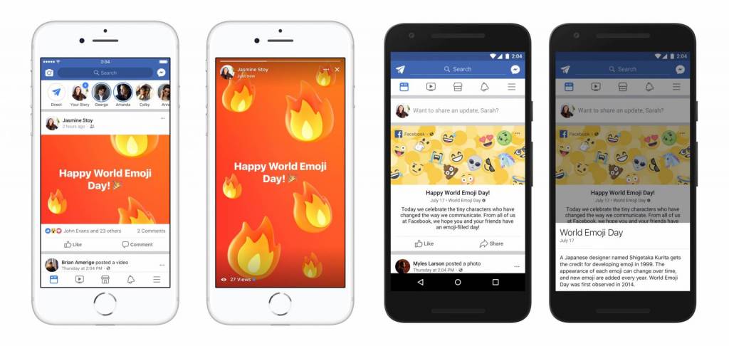 Per festeggiare la giornata internazionale delle Emoji Facebook e Messenger offriranno alle persone la possibilità di mostrare le loro Emoji preferite nelle cornici e come sfondo o tema del post.