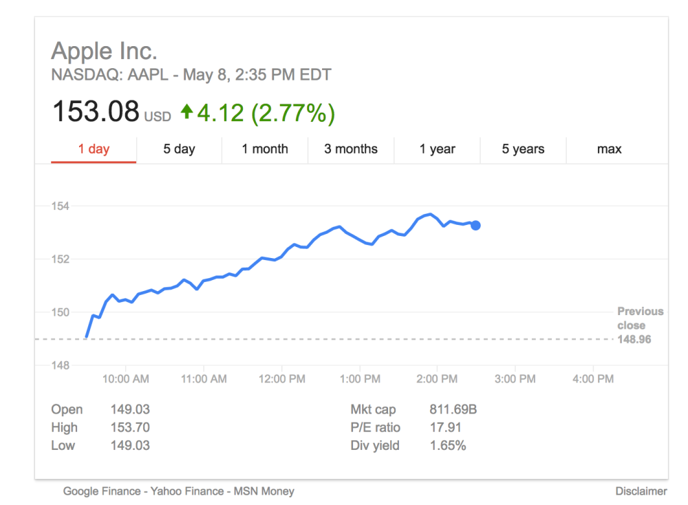 Il record di mercato delle azioni Apple AAPL arriva una settimana dopo la condivisione dei guadagni relativi al secondo trimestre fiscale. Toccato il record degli 800 miliardi di dollari, con le azioni di AAPL che hanno raggiunto un livello massimo di $153,70.