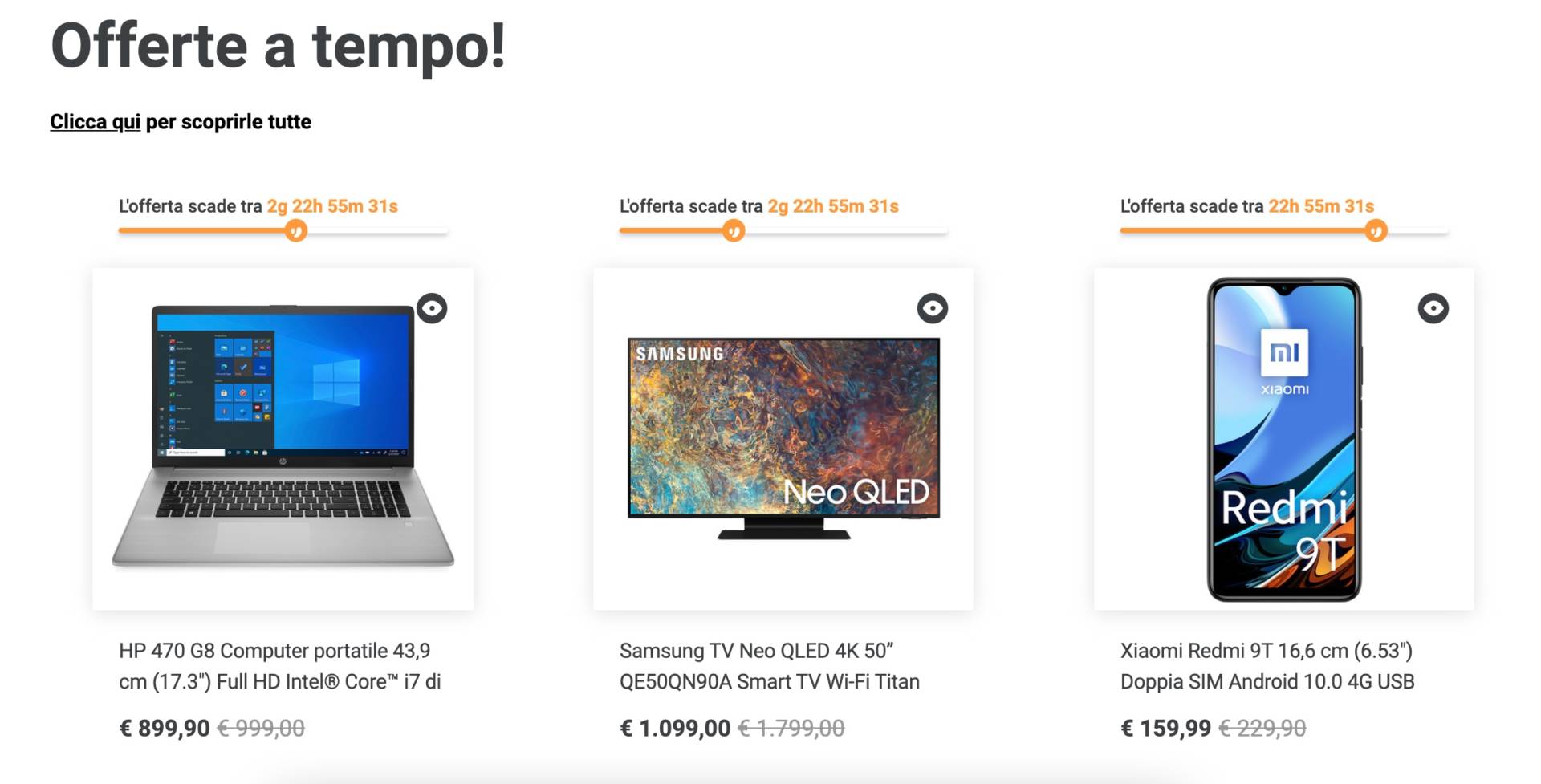 Le offerte del Black Friday 2021 in Italia continuano anche con il nuovo volantino Unieuro. La catena ha deciso di mettere a disposizione dei clienti sia offerte a tempo (disponibili per un periodo limitato) sia offerte più prolungate. Tra queste ultime, il laptop HP Chromebook 14a-na0019nl con uno sconto del 40% (prezzo di 199,99 euro invece di 349,90 euro); la macchina del caffè DeLonghi ECAM 23.125.B scontata del 50% (la si paga 299,90 euro invece di 599,90 euro); il televisore Samsung Series 6 TV QLED 4K 55” ad un prezzo scontato del 33% (699 euro invece di 1.049 euro); e infine la super offerta sulla lavatrice smart LG F4WV510S1E scontata del ben 60% (499 euro invece di 1.249 euro).