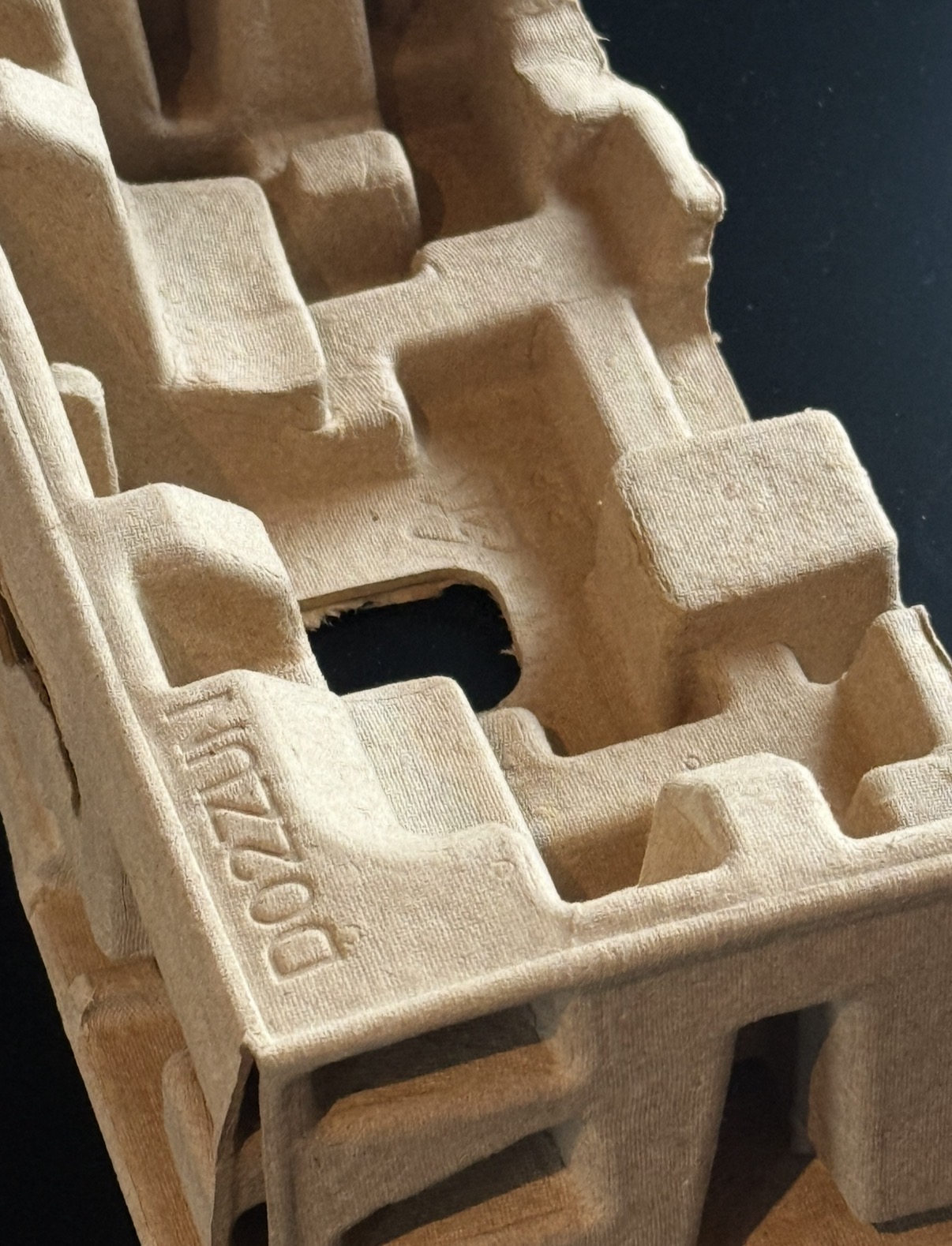 Un’altra la vera rivoluzione non è all’interno delle stampanti, ma anche intorno a esse. Brother ha presentato in anteprima un nuovo sistema di imballaggio in polpa di cellulosa stampata, che sostituisce i tradizionali materiali plastici come l’EPS (polistirene espanso). Non è solo un cambiamento estetico o tecnico: è un nuovo modo di intendere la responsabilità industriale. La polpa modellata nasce da fibre naturali e riciclate, è facilmente compostabile e consente di ridurre drasticamente le emissioni di CO₂ legate alla produzione e allo smaltimento degli imballaggi.