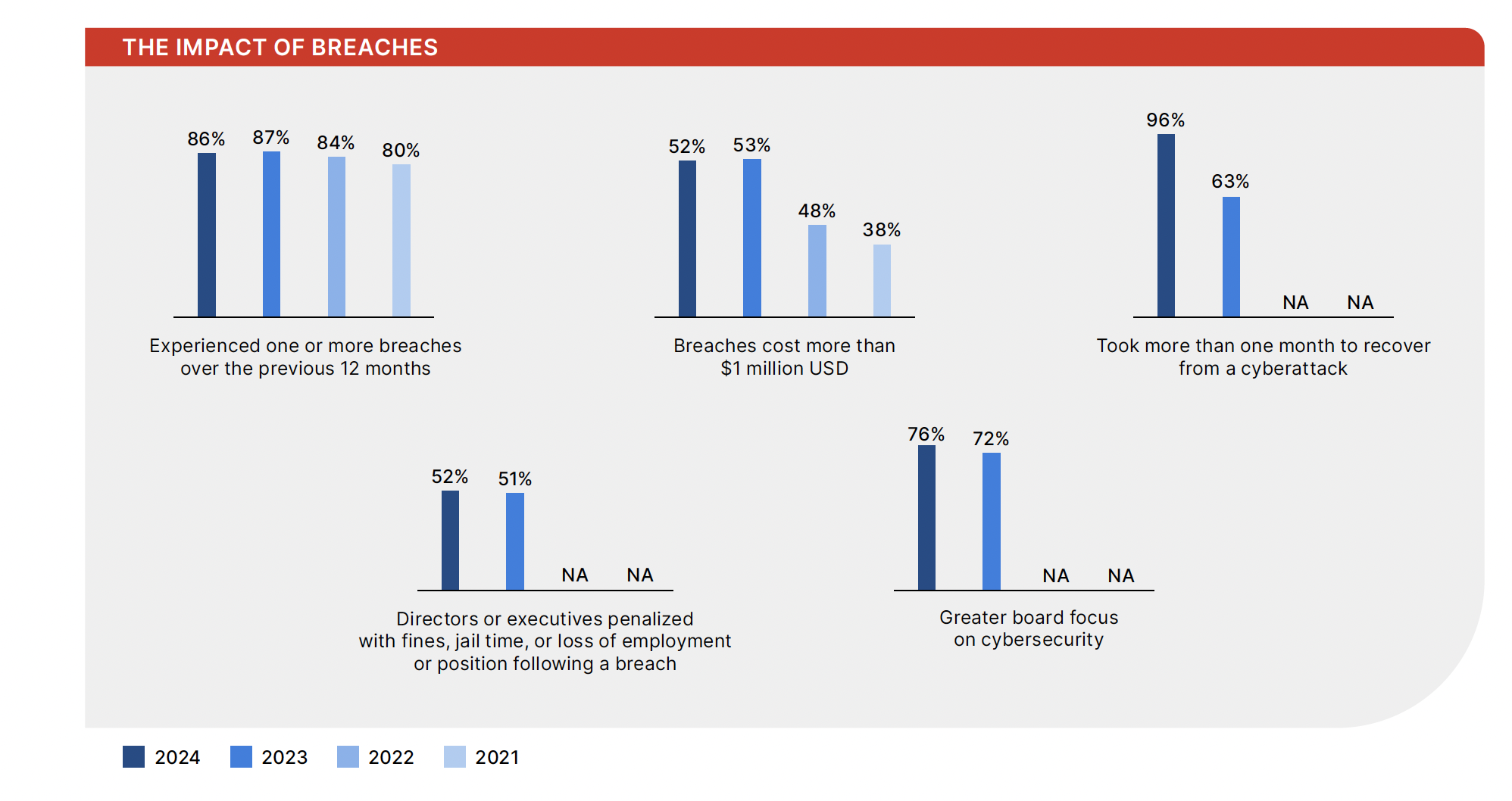 Il costo di queste violazioni è enorme, secondo i dati della ricerca, il 52% delle organizzazioni ha speso oltre 1 milione di dollari per gestire gli incidenti di sicurezza nel 2024, si è creata quindi una situazione in cui le organizzazioni non solo subiscono attacchi più frequenti, ma anche più costosi.
