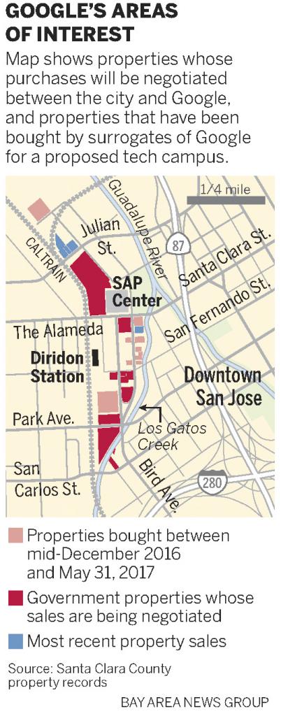 A partire dalla metà del dicembre del 2016, il ritmo degli acquisti di proprietà è aumentato. Due gruppi di investitori immobiliari con connessioni con Trammel Crow o direttamente con Google, hanno acquistato immobili nell’area che ospita un vasto assortimento di siti industriali oltre ad altre proprietà. Gli acquirenti, operanti con i nomi TC Agoge Associates e Rhyolite Enterprises, hanno speso un totale di 130 milioni di dollari.