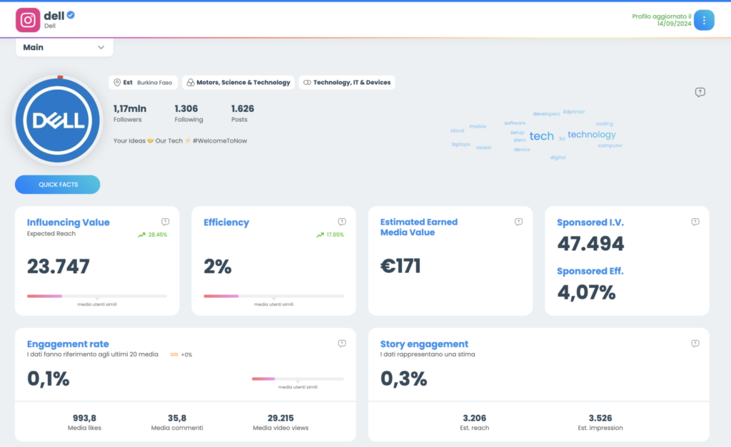 Dell, con 1,17 milioni di follower, segue subito dopo Lenovo. Dell utilizza Instagram per promuovere le sue soluzioni IT, puntando molto sul segmento del business e delle soluzioni aziendali. La sua presenza social è forte nel comunicare affidabilità e performance.